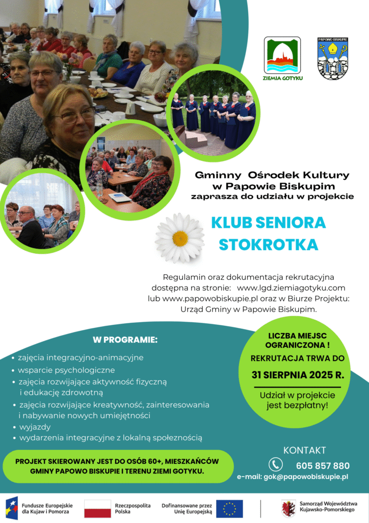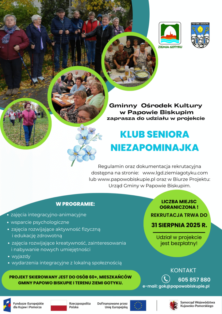 Tytuł projektu: AKADEMIA KOBIET SUKCESU Termin realizacji projektu: 01.09.2025 r. – 30.03.2026 r. Wartość całkowita projektu: 86.153,58 zł Wkład własny grantobiorcy: 4.484,78 zł Wartość dofinansowania projektu objętego grantem: 81 668,80 zł Dofinansowanie projektu ze środków Europejskiego Funduszu Społecznego Plus w ramach Priorytetu 7 Fundusze Europejskie na Rozwój Lokalny: Działania 07.01 Przełamywanie stereotypów związanych z płcią programu Fundusze Europejskie dla Kujaw i […]