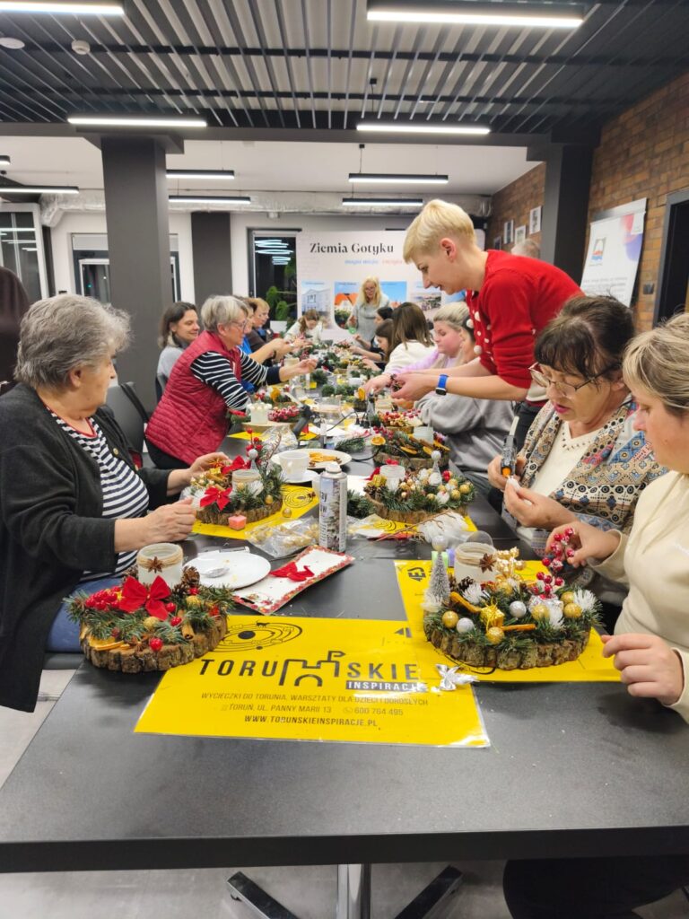 3 grudnia w LGD Ziemia Gotyku we współpracy z Toruńskie Inspiracje odbyły się rękodzielnicze warsztaty aktywizacyjne w świątecznym klimacie. Uczestnicy w ramach spotkania własnoręcznie przygotowali stroiki bożonarodzeniowe.