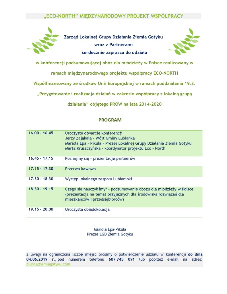 ZAPYTANIE OFERTOWE NR 11/PM/2019 dotyczące wykonania usługi tłumaczenia symultanicznego (język polski język angielski) podczas konferencji w ramach realizacji międzynarodowego projektu współpracy „Eco-North”